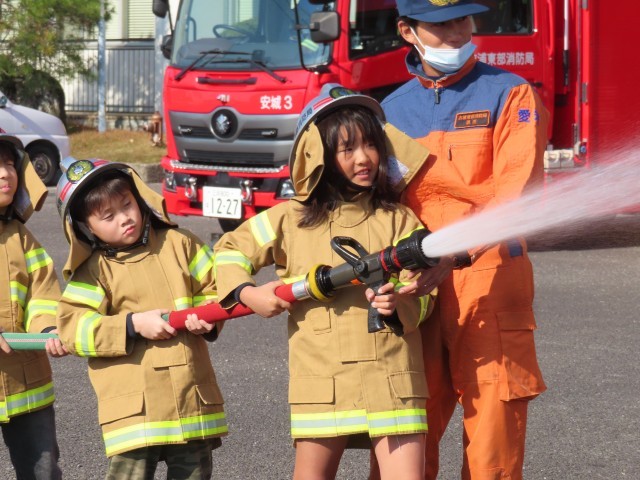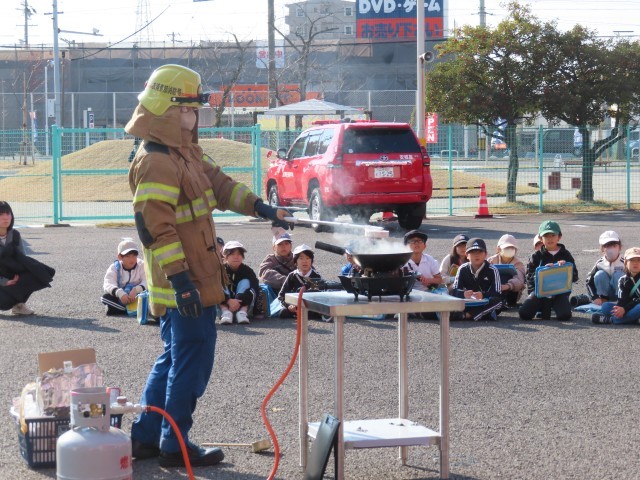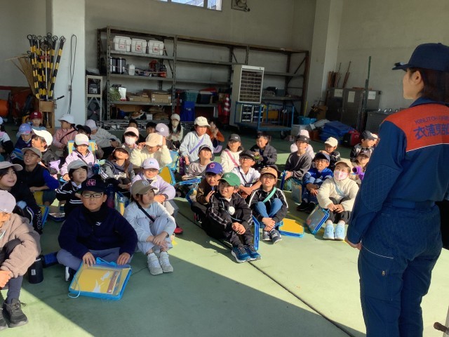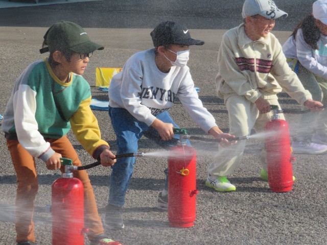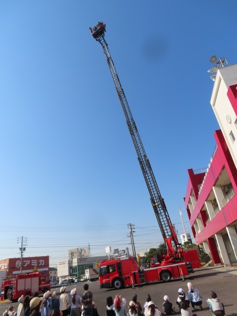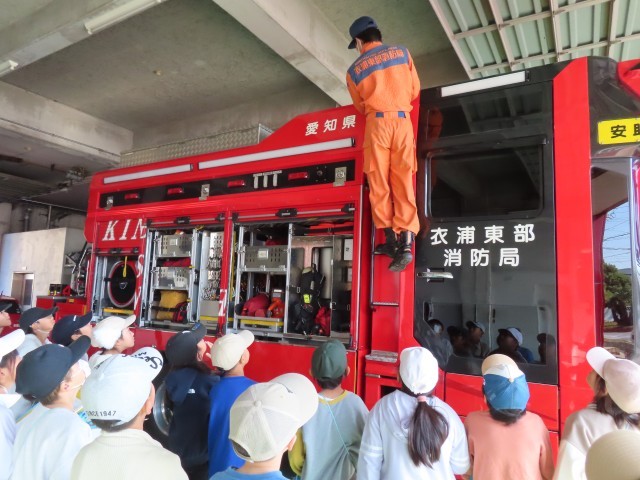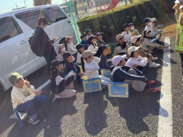 今日の2~4時間目に、3年生で消防署見学に行きました。引火した油の消火は、水を使うと逆に大きく燃えてしまうという実験を見たり、消火器を使った消火体験をしたりしました。見学中だけでも3件の救急要請の放送が流れて救急車で出動される様子を見て、消防士さんたちの仕事の大変さを知りました。最後にはしご車の高さを見させていただき、30mを超える高さでも消火活動や救助活動を行うことができる消防士さんの勇敢さ、技術の高さも学びました。みんなの安全を守ってくれている消防士さんのかっこよさをより実感できた見学になりました。