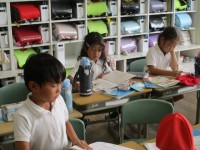 外国語活動の時間に、文房具を英語で話す練習をしました。発音に気をつけながら、子...