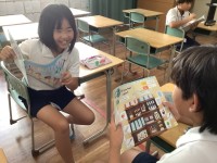 外国語では、筆箱の中身にある文房具を英語で伝え合いました。教科書から相手が選ん...