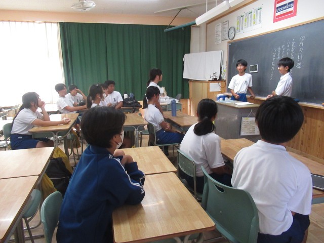 先週の金曜日、後期委員長さんたちとの会食を行いました。きらきら輝く瞳を見ていて、うれしくってたまりませんでした。そして、今日、新たな委員会の船出となりました。自己紹介後、組織や活動内容を話し合ったり、アイスブレイクを行い、まずは委員どうしの交流を図ったりしていました。委員会活動には、常時活動としての当番活動があり、どれも安祥中生の生活を支えてくれるものです。委員長さん、委員のみなさん、よろしく頼みますね。