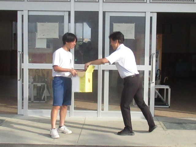 「おはようございま~す。ご協力、お願いしま~す。」前期生徒会執行部の面々の元気な呼びかけが迎えてくれています。今日から10日(金)まで、赤い羽根募金活動を実施します。地域福祉の推進を目的としています。ご協力をよろしくお願いいたします。