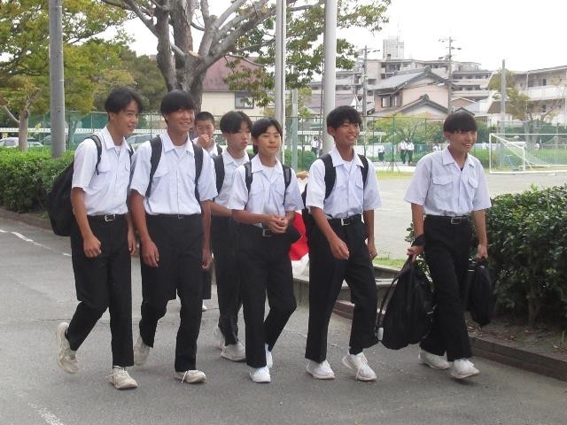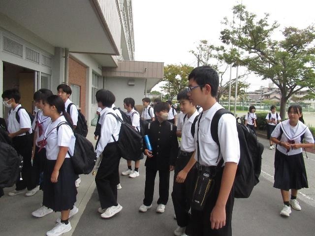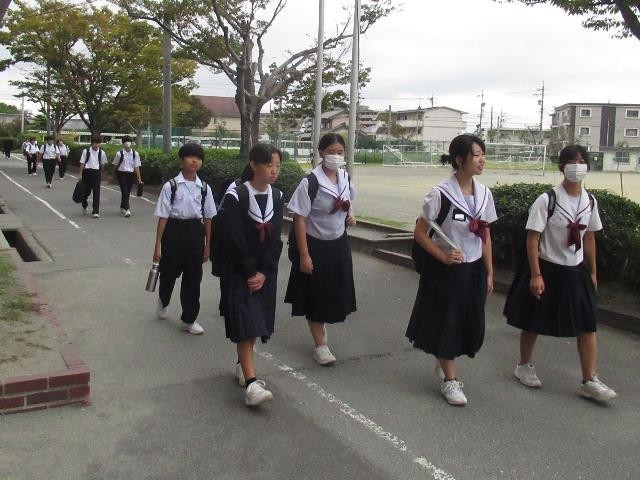 熱中症対策の体操服登校から制服での生活へ変わりました。田畑のわきに咲く赤色や白色の彼岸花が季節の移ろいを教えてくれています。B紙を抱えた生徒に声をかけると「学級掲示を作ってきました。」と教えてくれました。ありがとう。