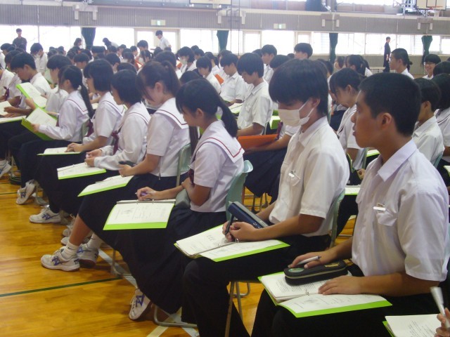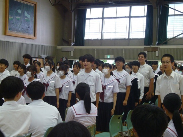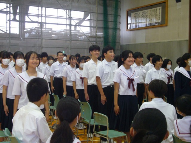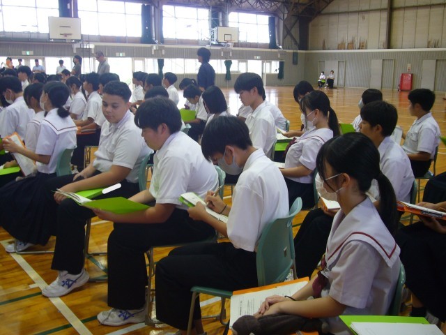 お帰りの際に、講師の方から「とても大きな声で、意欲的に取り組んでくれました。自分の名前も堂々と言うことができ、すごいなあと思いました。やる気に満ちた姿に、ついつい私の方もマイクを使わずにお話をしてしまったほどです…。」と、お褒めの言葉をいただきました。ありがとう。
