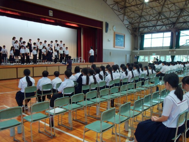 本日1年生は、合唱コンクールのリハーサルを行いました。