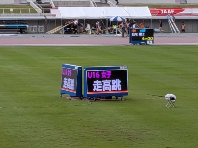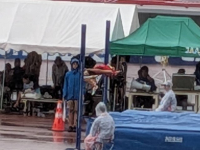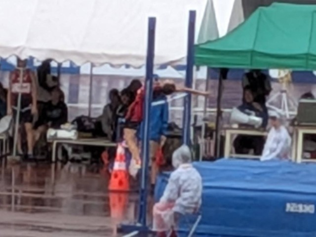 全国より集いし高校1年生を含む31名のトップアスリートたち。無情にも強く雨が降る中、競技開始。直前練習では160cmをクリアし、いよいよ本番。固唾を呑んで見守った155cmを1本目で見事にクリア、よし!! バーは一気に162cmへ…。あとわずかでした。しかしながら、堂々の10位というすばらしい結果でした。2度の全国の舞台で輝いた彼女に大きな拍手を贈りたいです。そして、感動をありがとう。応援ありがとうございました。