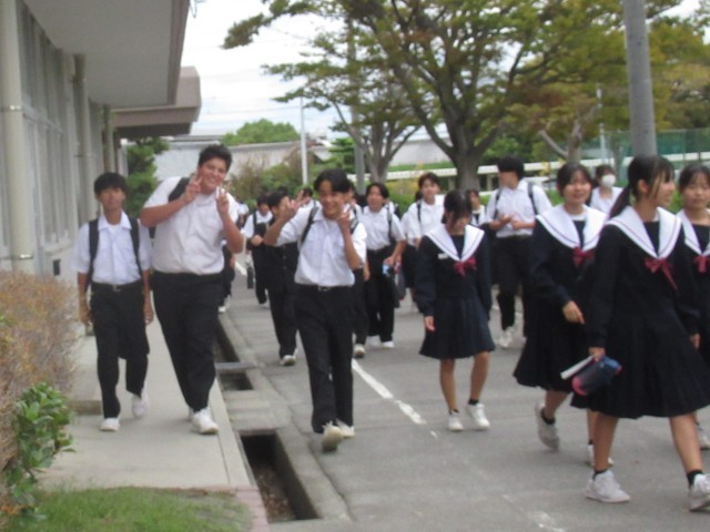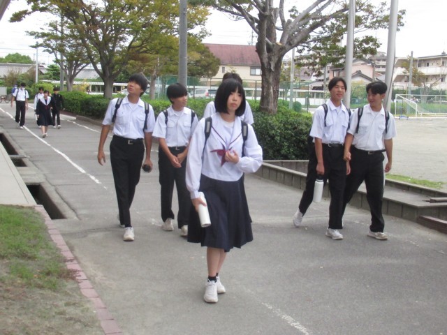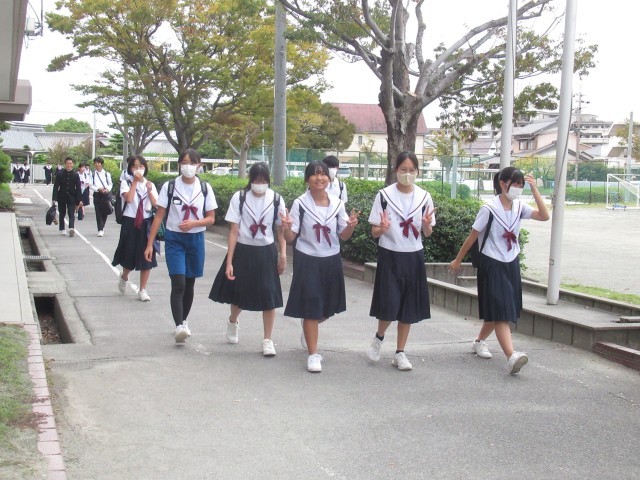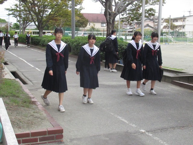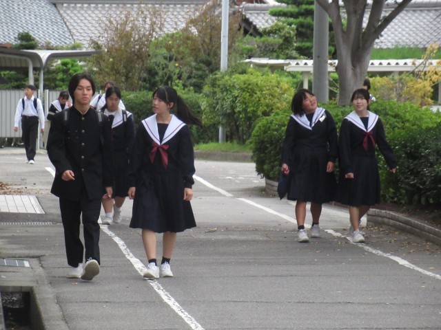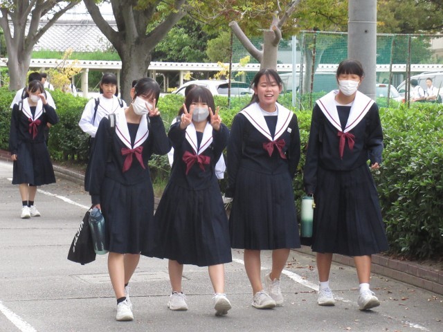 昨日までは、ぱらぱらだった冬の制服姿が今日はどっと増えました。急な冷え込みが始まっています。風邪をひかないでくださいね。不思議だったのは、示し合わせたかのような仲良しグループの服装です。「あしたは、夏服?それとも冬服?」そんな会話をしているのでしょうか。