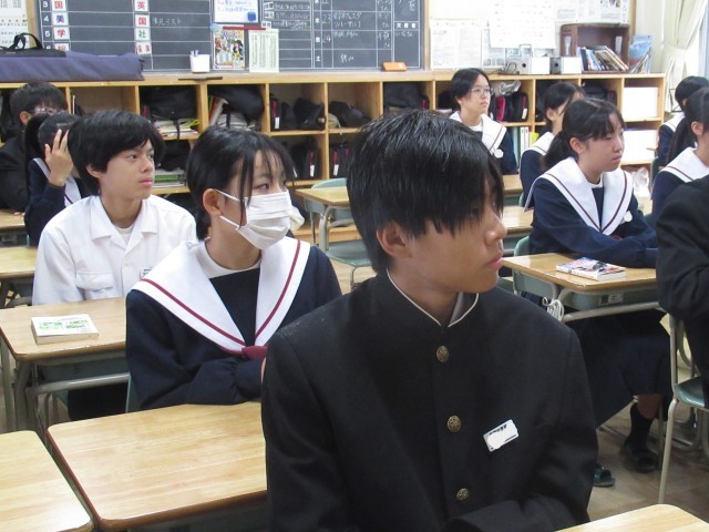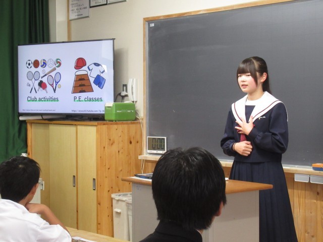 昨日に引き続き、今日は2年生の出場者2名が度胸試しに1年生の教室でプレゼンテーションを行いました。本日午後からの「安城市中学校英語プレゼンテーションコンテスト」が楽しみになってくる出来栄えでした。自信をもって臨んでくださいね。聴衆の1年生の真剣なまなざし、とてもすてきでしたよ。ありがとう。