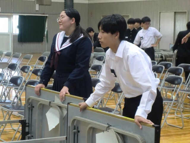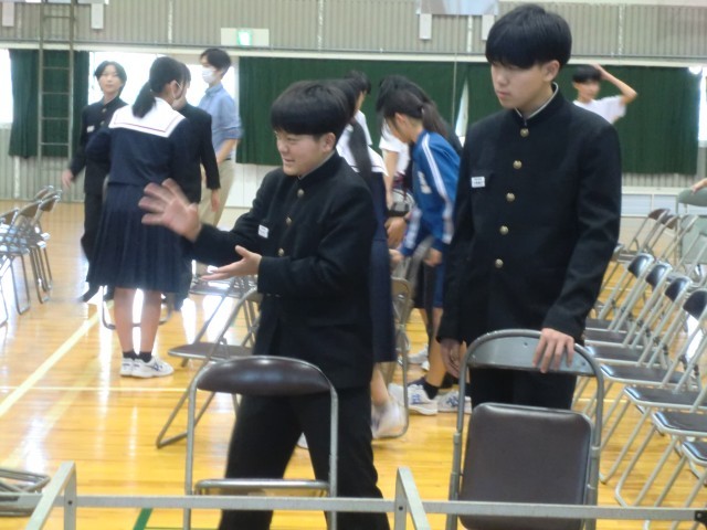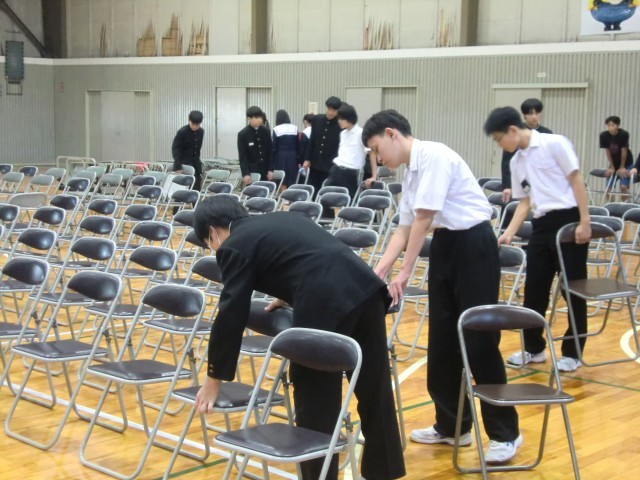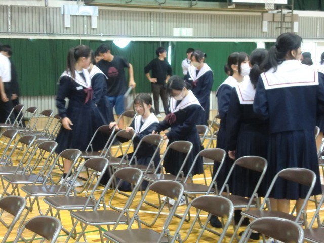 本日の授業後、安祥フェスタの会場準備を行いました。準備のボランティアを募ったところ、多くの3年生が集まってくれました(一部の2年生もお手伝いで参加)。座席の縦横のラインにも気を配りながらてきぱきと動く3年生の姿を見て、改めて安祥中を支える存在であると感じました。ありがとう3年生。その素敵な姿を、明日、明後日も見せてください。