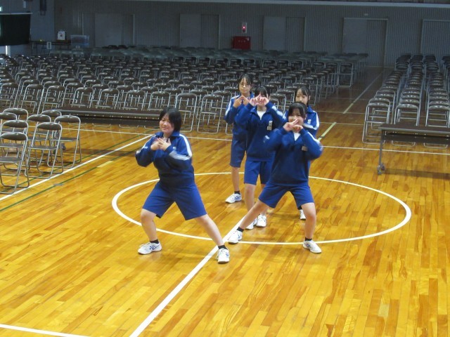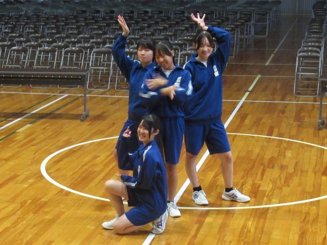 体育館では、うまく写真が撮れず、1グループだけ学習室で特別ステージ。ありがとう。最後のグループは、決めが入るよと教えてくれたので、もう1枚追加。咲き誇る3年生女子、ステキですよ。