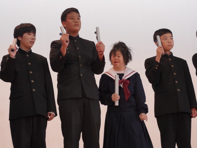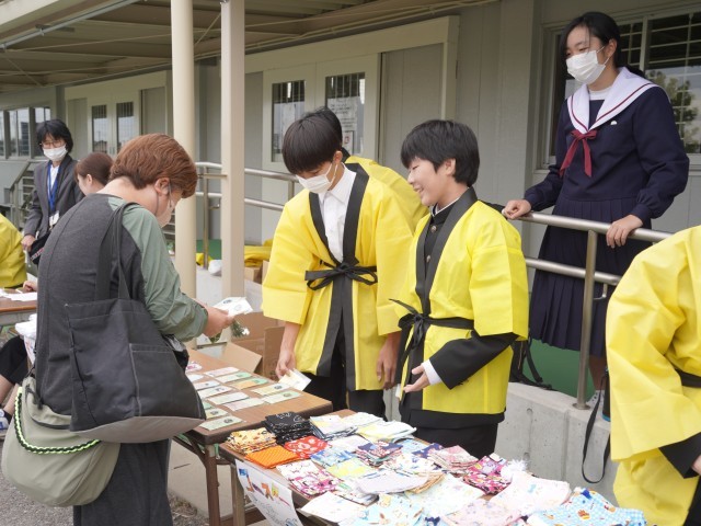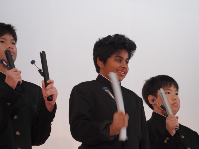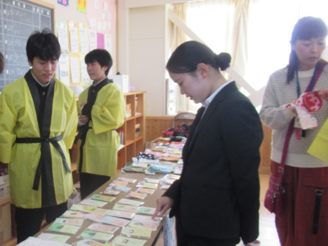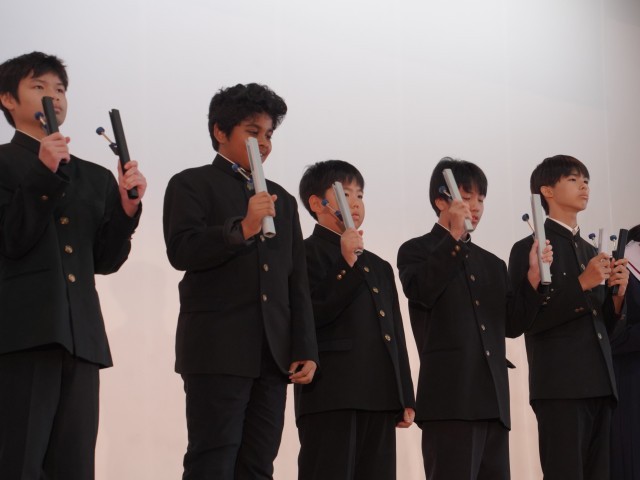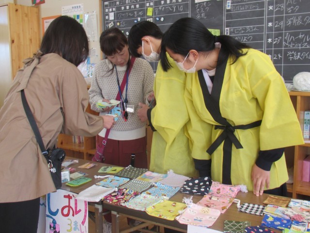 トーンチャイムの澄んだ音色が体育館中に響き渡りました。とても緊張していましたが、今までがんばって練習してきた成果が出ていましたよ。お互いの音を聴き合いながら、すばらしい演奏を披露してくれて、ありがとう。「ハーモニー賞」にも輝きました。作業の時間に製作した雑巾、巾着袋、ポチ袋などの販売も大盛況。前日にデモンストレーションをしっかりおこなった甲斐がありましたね。