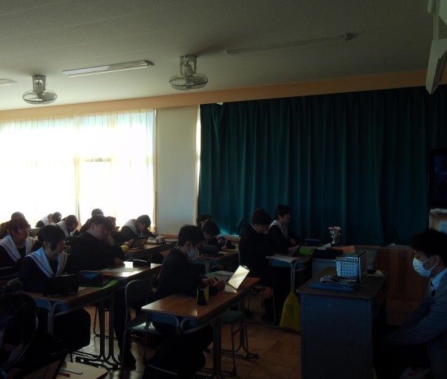 1年生はオンライン会議を使って、インドネシアで働く日本人の方に講話をしていただきました。