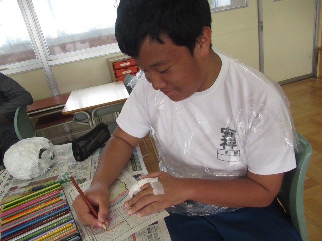 8・9・10組 美術科「悪霊を追い払え!! 不思議なもようのかぼちゃ作り」