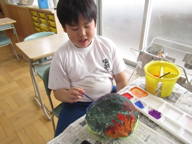 ハロウィーンは過ぎてしまいましたが、願いを込めたかぼちゃ作りに取り組んでいます。悪霊退散のパワーを秘めたもようをデザインしての制作です。色合いもパワーアップには、とても大切になってきます。幸せを訪れますように。