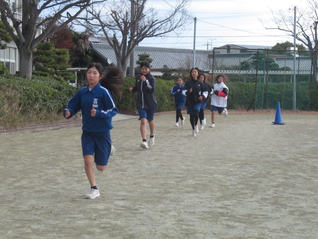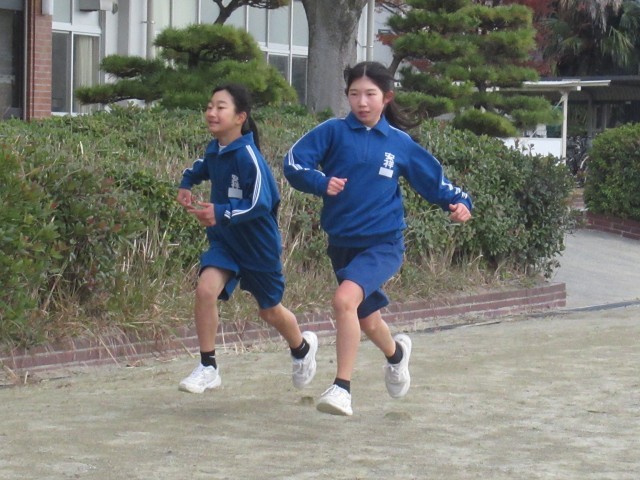 寒風吹きすさぶグラウンドに、「がんばれ~」の声が響きます。いよいよ長距離走のシーズンが到来しました。まずは、試走一回目、今の自分の記録をもとに目標を立てていきます。走る前は、あーだ、こーだという感じでしたが、走り出せば、真剣そのもの、ゴール前のデッドヒートも繰り広げていました。思わず声援にも力が入ります!!