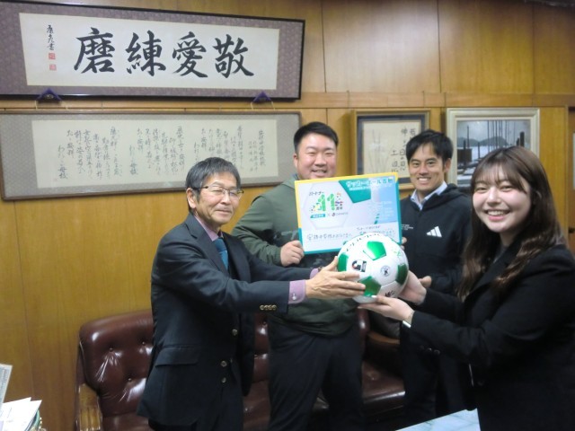 本校卒業生が勤めている企業からサッカーボールの寄贈がありました。サッカーボールとともに、「サッカーでみなさまが笑顔になりますように」というメッセージ付きのボードもいただきました。ありがとうございました!これでサッカー部がさらに強くなる!そして、もつべきものは卒業生!