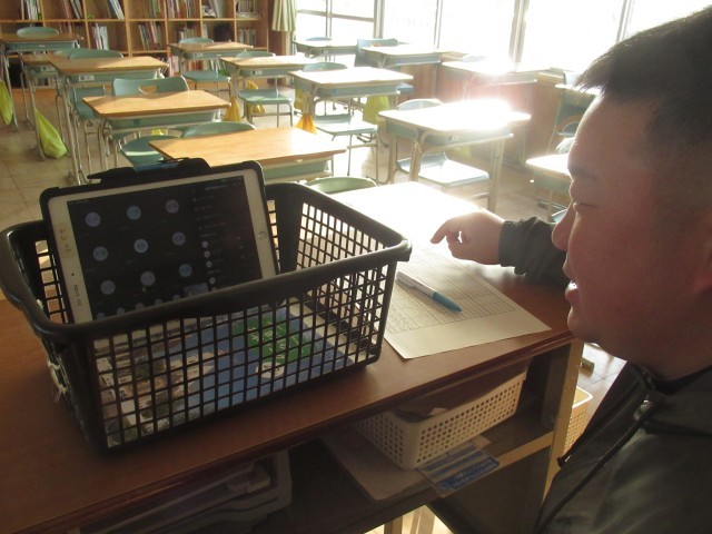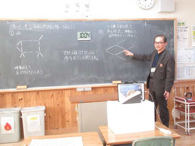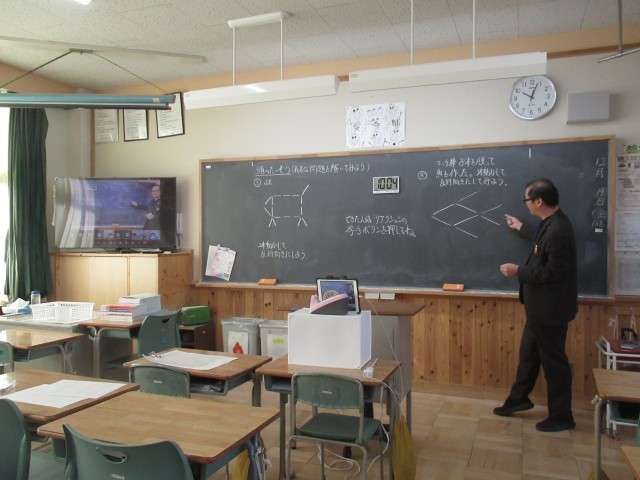 インフルエンザの流行により3学級で学級閉鎖の対応を取っています。その中でも朝のSTはオンラインで行い、健康観察を中心に進めています。担任の表情を見ていると、離れていてもみんなからの反応に笑みがこぼれています。閉鎖中の学習支援としては、マイタブレット内の学習支援アプリや復習問題集を使って個々に進めています。それだけでなく、オンラインで「頭の体操」も。心はつながっていますね。1学級は、明日から、2学級は、明後日から登校、待っていますね。