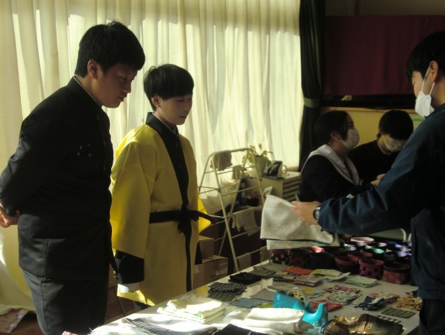 昨日に引き続き、本日も販売会が行われ、多くの先生が特別支援の教室を訪れました。来年度は、通常学級の生徒にも販売できたらなあと思いました。多くの生徒との交流にもなるし、さらなる売り上げアップにもつながるだろうからね。
