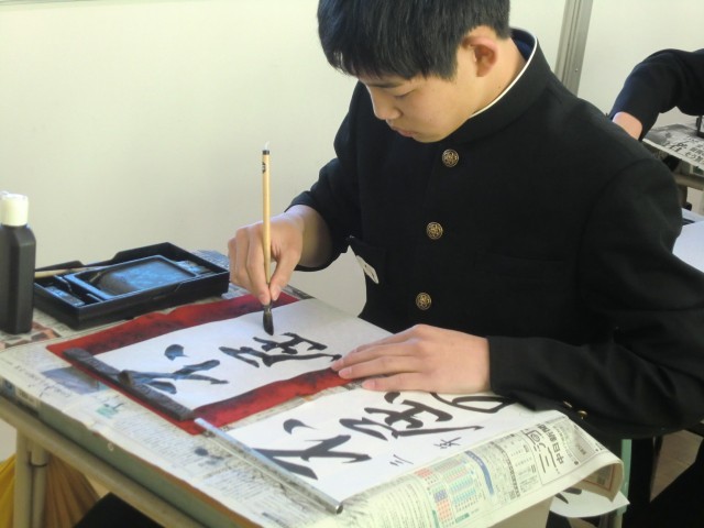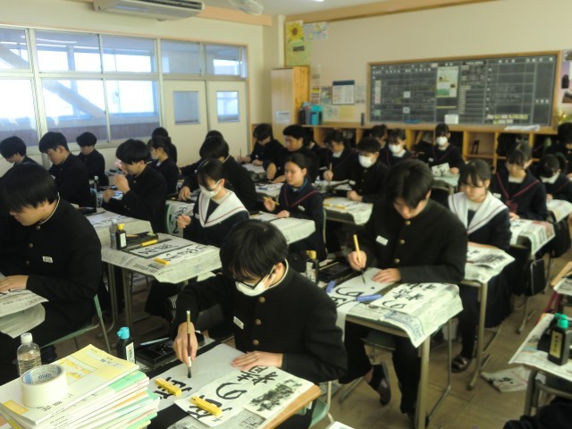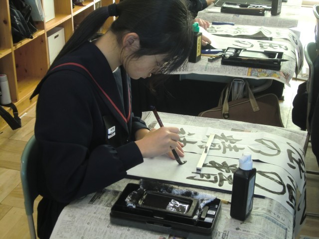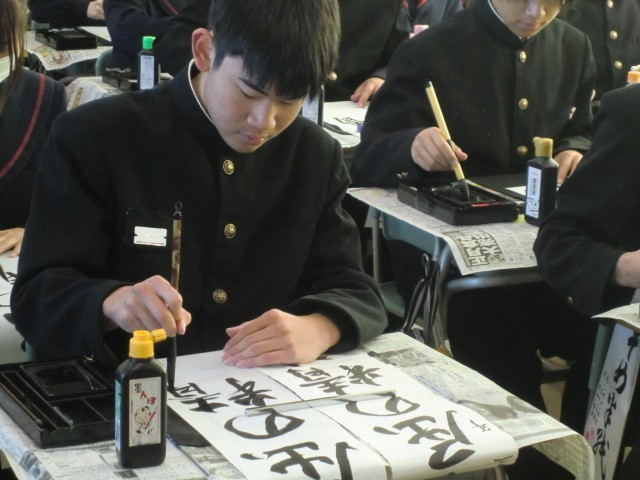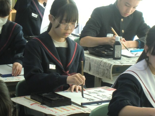 普段は活気あふれる教室ですが、書き初めの時間はみんなが集中し、凛とした空気が漂っていました。この集中力と「不屈の精神」があれば、どんな困難(まずは受験かな)も乗り越えられるはずです。