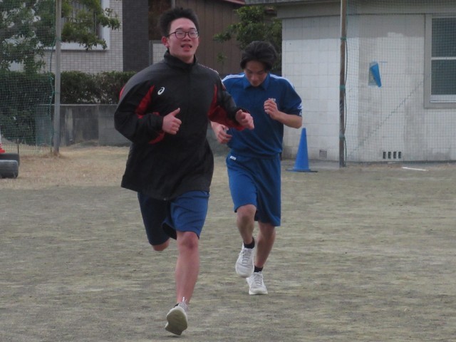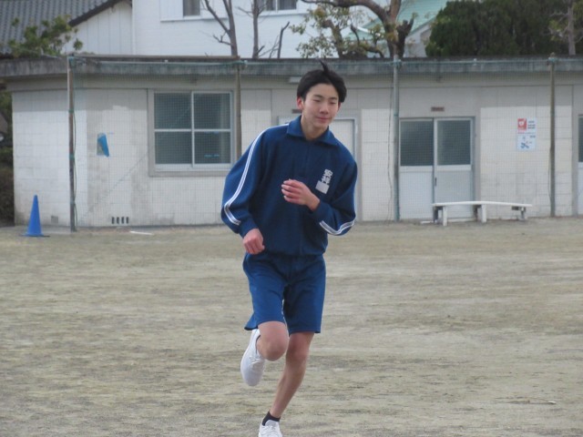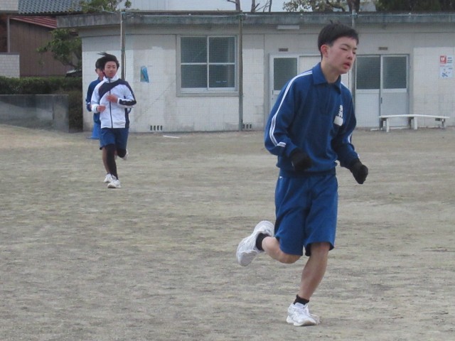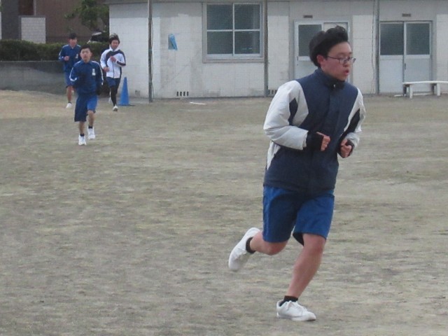 ラップが読み上げる中、次々とゴールへ。今日から3年生男子は、長距離走の学習が始まりました。3時間目は、みぞれ混じる中での試走となりました。それぞれが自分の目標タイムを設定し、これからの学習に取り組みます。応援していますよ!