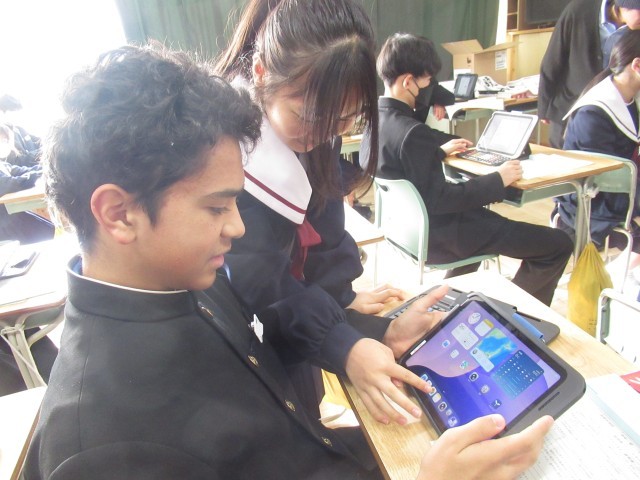 Myタブレットが新たに更新され、早速セットアップの作業に取り掛かった2年生です。待つこと、数分…、無事サインイン完了、これから1年間の相棒となります。新しくなった学びのツールを駆使して、学習に取り組んでくださいね。自分のアカウント情報については、くれぐれも大切にしてくださいね。