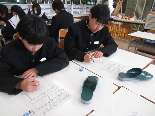 オンラインでの健康観察、数学の問いへのアプローチ、一年のあゆみを描くスリッパのデッサン、明日からの授業のための対話やファシリテーションの研修、誰かと、何かと、安祥中の明日へとつながる一日です。