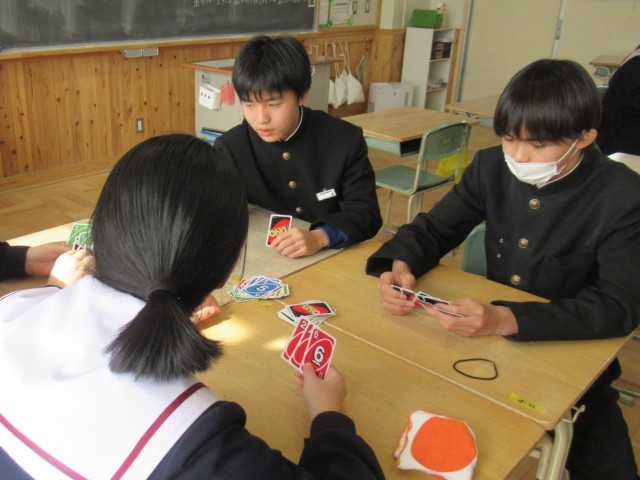 不思議がいっぱい理科の学習で頭を使った後は、グループに分かれてのウノ大会。「校長先生もやる?」と誘われて、参戦しました。スキップやドロー2で、なかなか終わらず苦戦しましたが、なんと最後は「ダブルウノ!!」気持ちよかった~。