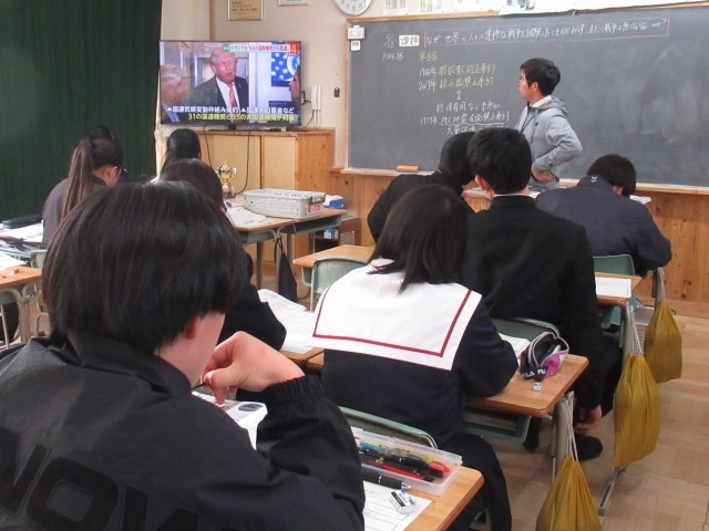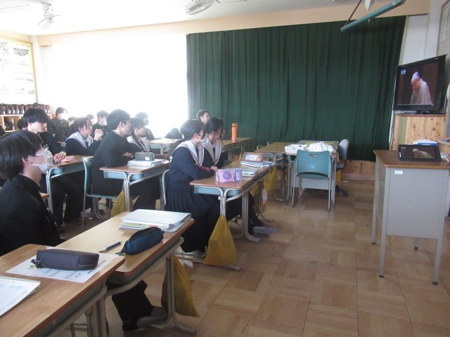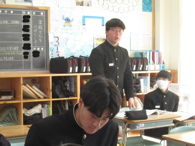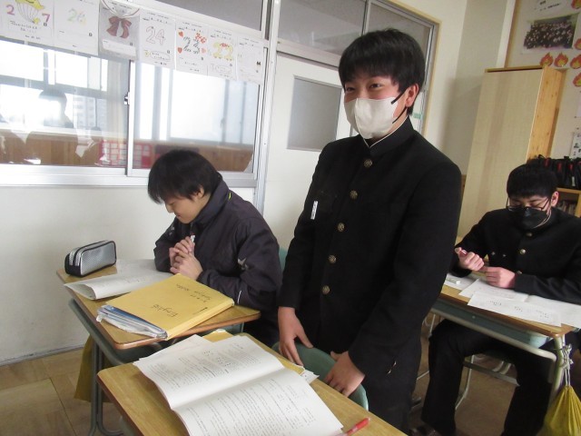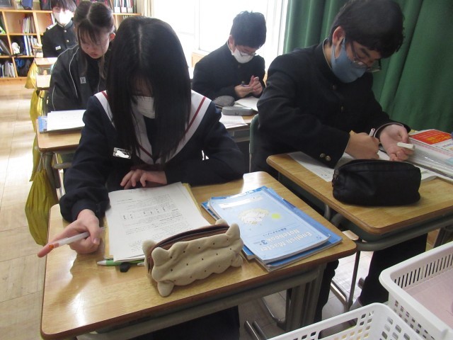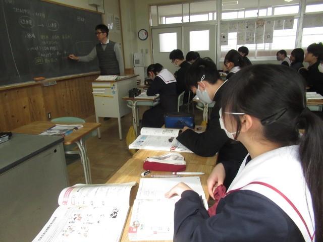 公立高校の一般入試に向けてのWeb出願手続きが順調に進んでいます。来週月曜日3時までとなっていますので、できれば本日中に検定料の払い込みを済ませておいてください。昨日より卒業式の練習も始まりました。登校するのもあと14日となります。そんな中ですが、社会科では、「中学校を羽ばたくその前に」という単元で、平和や世界情勢について考えています。また、理科でも、今までの理科の学びを実生活に生かす単元を学習しています。国語科では、古典落語の鑑賞、英語科では、過去の入試問題での力試しを行っています。中学校で共に学ぶ時間を大切にしてくださいね。