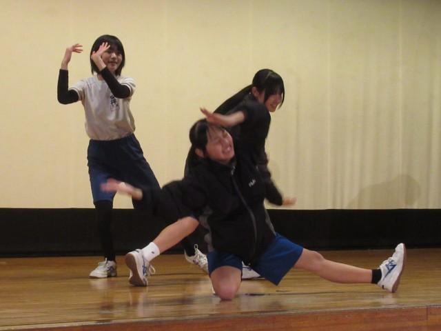 ポップコーン、ターン、スライドステップ、シャッフル、チャールストン、クラブステップ、ピーターポール…、耳慣れない言葉が続きますが、これらはみなステップだそうです。ふ~ん。既存のダンスにステップを加えてののりのりのダンス発表会、一学級しか見られず、とっても残念だったなあと思うほどのステキなダンスでした。