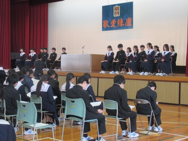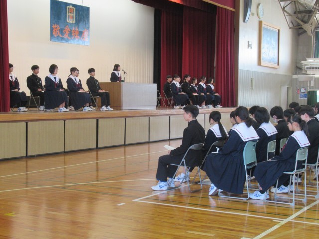 会長を始めとして、13の役職へ23名が立候補、各々の熱い思いを660の瞳にぶつけた立会演説会となりました。安祥中をよりよくしたい、もっと楽しい生活を送れるようにしたい、そんな真剣な思いに対し、自分の一票の重さを感じる時間となりました。明日の安祥中を創っていこうね。
