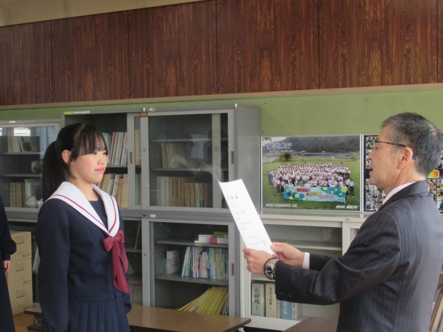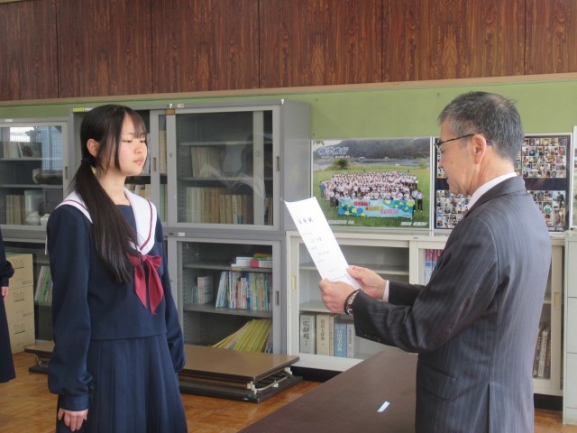 「よろしくお願いします。」新たな安祥中の顔となる生徒会役員・委員長の任命式を執り行いました。この凛々しい顔つきに、多くの期待を寄せています。彼らを中心として安祥中生徒会・委員会がステキな物語を紡いでいってくれることを願っています。