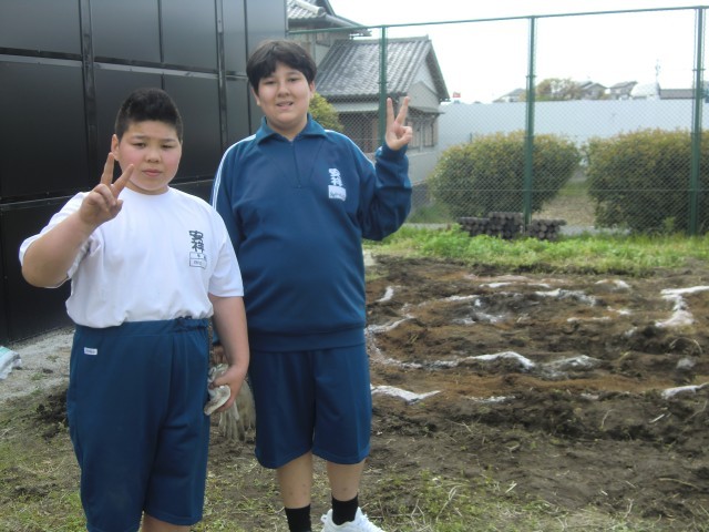 8・9・10・11組「畑の植え付け準備、がんばりました」