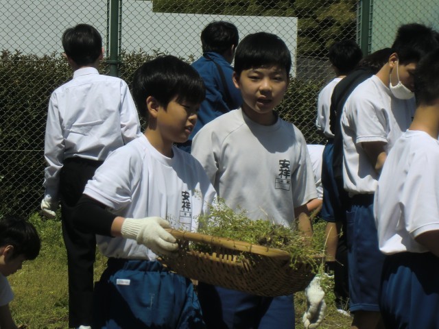 昨日、今日の二日間に渡り、自分たちの畑の草取りをしたり、土を耕したりしました。1枚目が昨日、2枚目が今日の畑ですが、その違いにびっくりです。みんながんばりましたね。何を植えるかは・・・、お楽しみに。