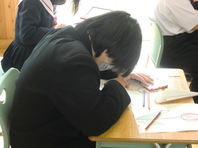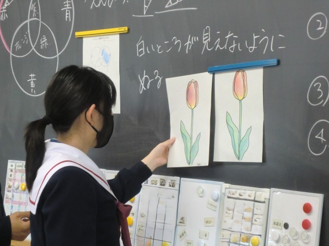 8・9・10・11組美術科「チューリップをぬろう」