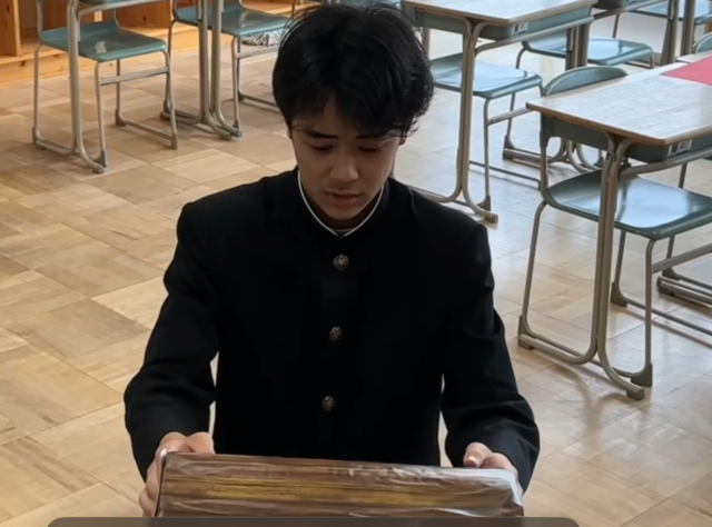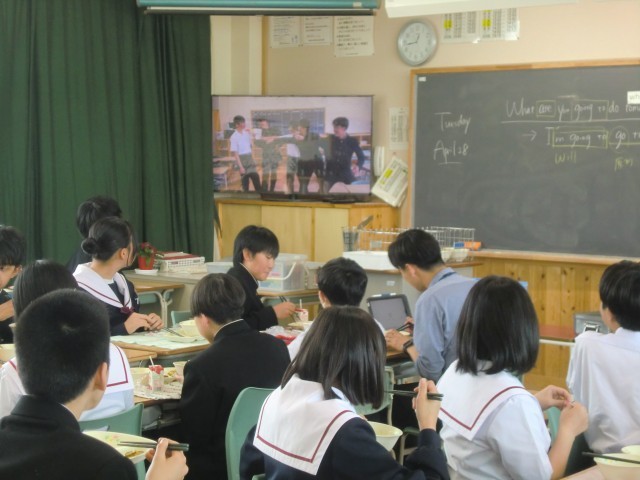 本日の給食の時間、団長紹介の映像が流れました。
