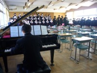 いつもなら元気な歌声が聞こえてくる音楽室から、今日は… 琴の調べが聞こえてきました。手の添え方にも気をつけて、神妙な面持ちで「サクラ、サクラ」がつま弾かれていきました。