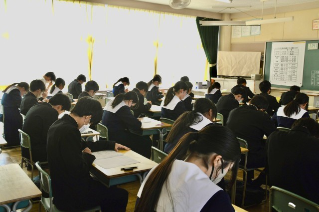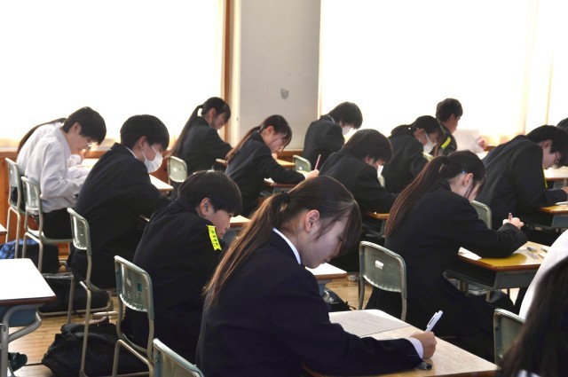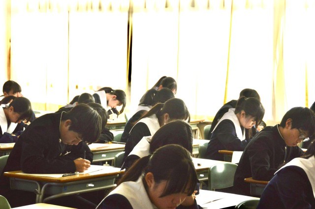 今日は定期テスト1日目。緊張感のある空気の中、シャープペンシルを走らせる音が響く教室です。