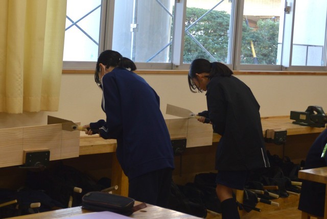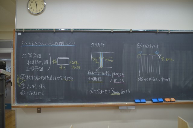 1年生の技術科では、「シンデレラフィットな収納づくり」をテーマに、木工の授業をしています。