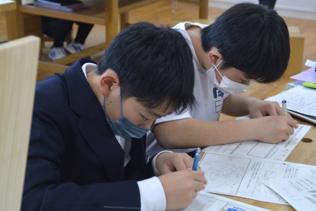 今日の授業は、作図から始まりました。正確に作図をしようと真剣な様子が、表情から伝わってきます。
