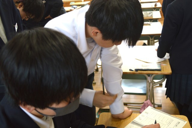 1年生の授業風景です。一人一人じっくり考えたり、考えを友だちと共有したりして学び合う姿がありました。