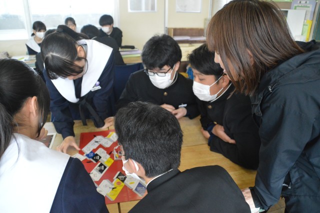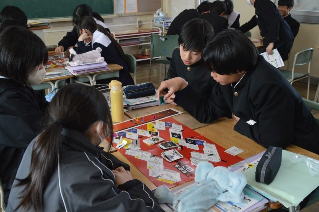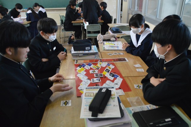 2年生の家庭科では、「悪徳商法対策ゲーム」をしながら学習しました。様々な悪徳商法や消費者トラブルがあることをゲームを通して知っておくことが今できる対策のひとつになります。楽しく学びながら、多様なトラブルに対応できる力を身につけました。