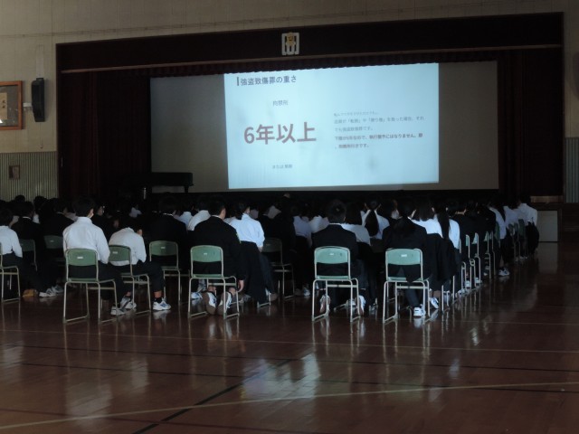 友達の写真を加工してLineに投稿したことが、のちのち大きな問題になる可能性がある等、法律の観点からケータイ・スマホの扱い方の注意点を講義していただきました。