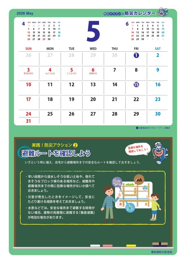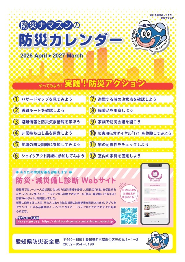 防災啓発用パンフレット「防災ナマズンの防災カレンダー(2026.4~2027.3)」について - 愛知県