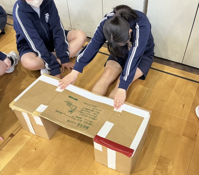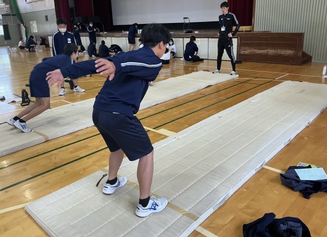 3年生 保健体育の授業では、上体起こし、反復横跳び、長座体前屈、立幅跳びの測定をしています。「超えるぞ!去年の自分の記録」をモットーにして先週の練習タイムを経て、今週は力の入った測定の時間となりました。残すは中学校生活ラストのシャトルランとハンドボール投げ。頑張れ3年生、去年の自分を超えよう!!