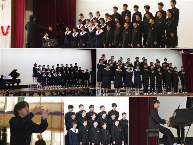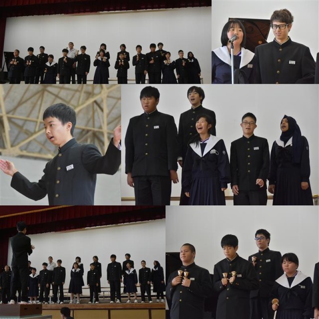 11~14組のハンドベルと合唱、3年生前半の合唱コンクールの様子です。