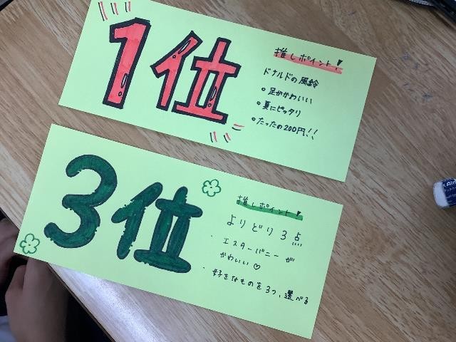 ☆「順位を書いたポップを作り、ポップは可愛く目立ってお客さんが集まるように作っています。」