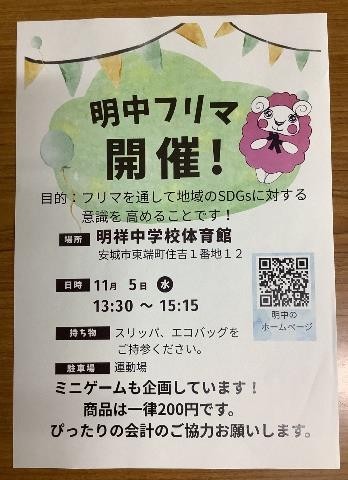 いよいよ明日が明中フリマです!