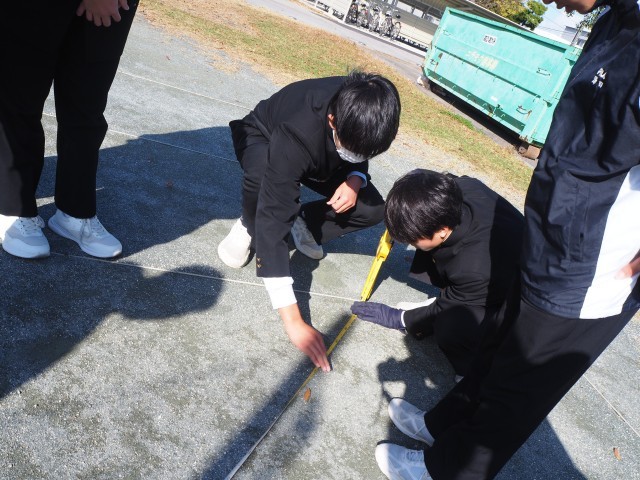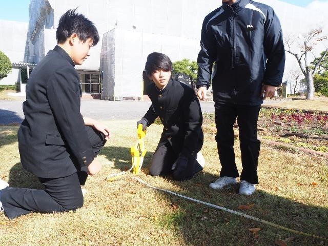 影の長さを測って、木の高さを計算しました。