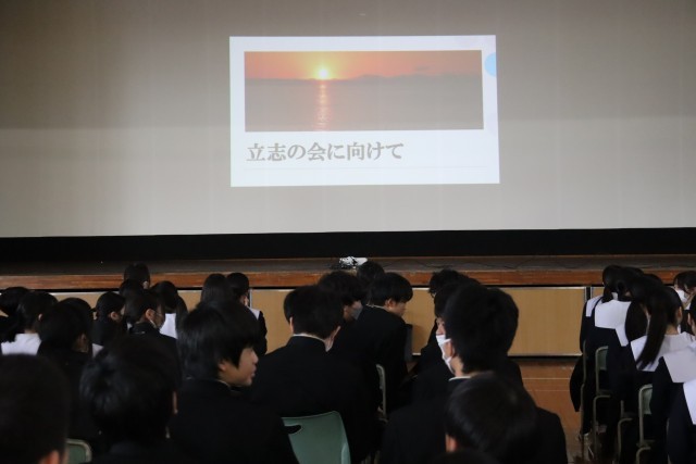 2学期も残すところあとわずかとなる中、2年生は立志の会についての話と来年度に向けての学年集会を開きました。長距離歩行を終えて、次に待ち構える立志の会に向けて、目的と目指すヴィジョンを共有しました。また、生活面や勉強面、進路選択に関しても伝えていき、少しずつ自分の将来像を思い浮かべる様子が見られました。