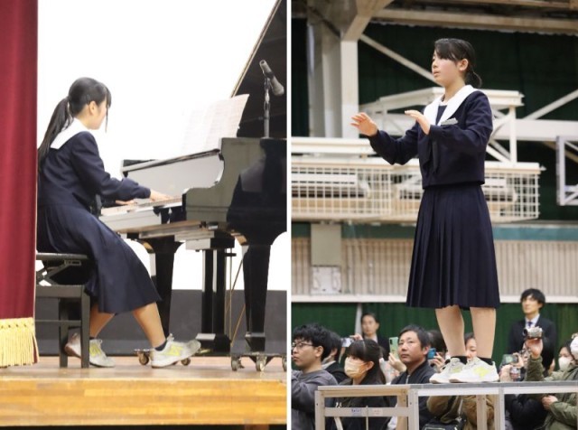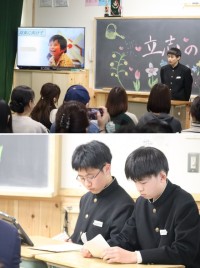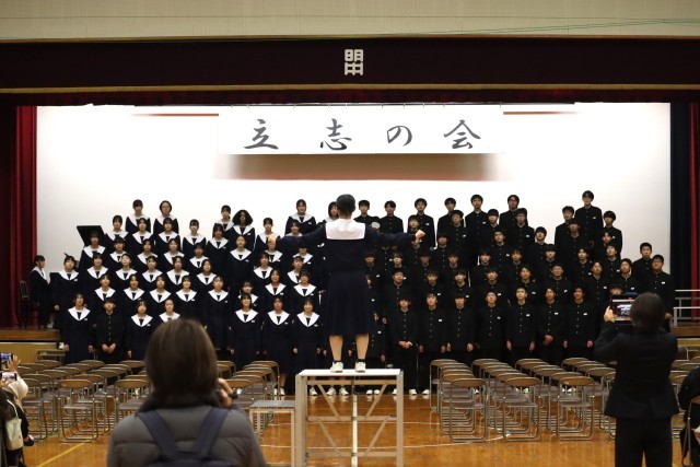 立志の会第2部では、ギネス記録への挑戦と、学年での合唱が行われました。ここまで準備を進めてきた集大成を保護者の方々に見ていただく中、堂々とした2年生の様子が見られました。