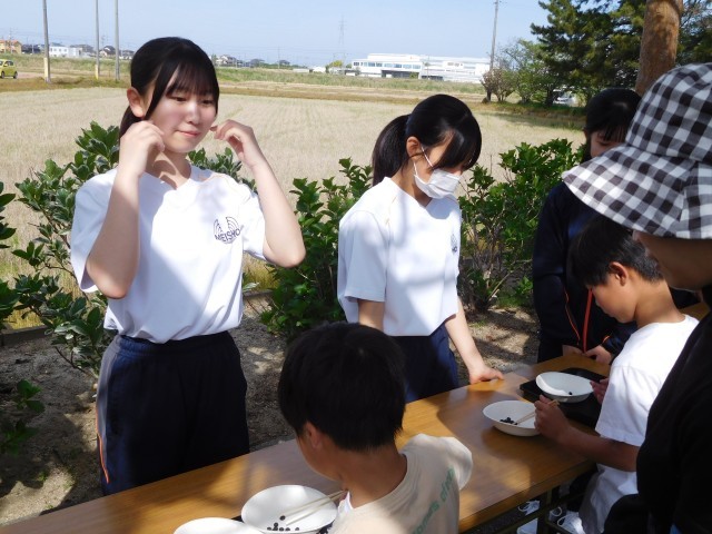 地域の人に、声をかけられたり、声をかけたりしながら、地域の一員として活動する生徒の姿は、